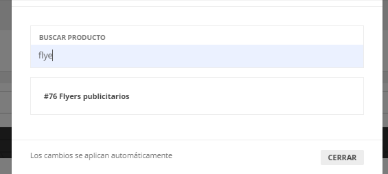 La interfaz para añadir producto es de tipo buscador. Los cambios se guardan automáticamente.