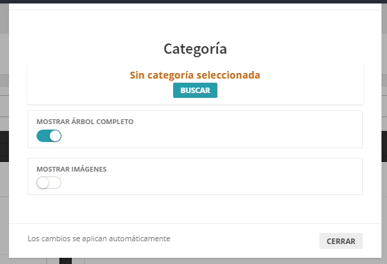 Permite mostrar una categoría. Para seleccionar la categoría hacer clic en buscar para acceder al buscador.