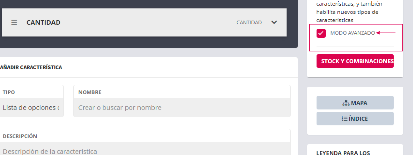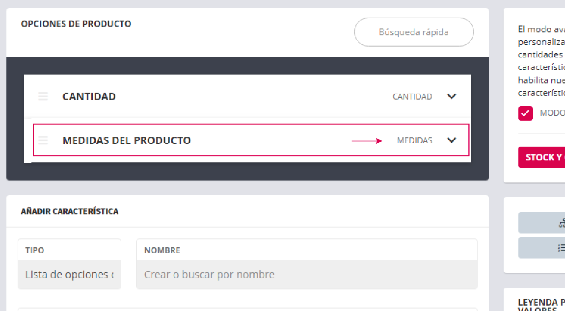 - Asegurarse de que el producto tiene característica de tipo "Medidas".