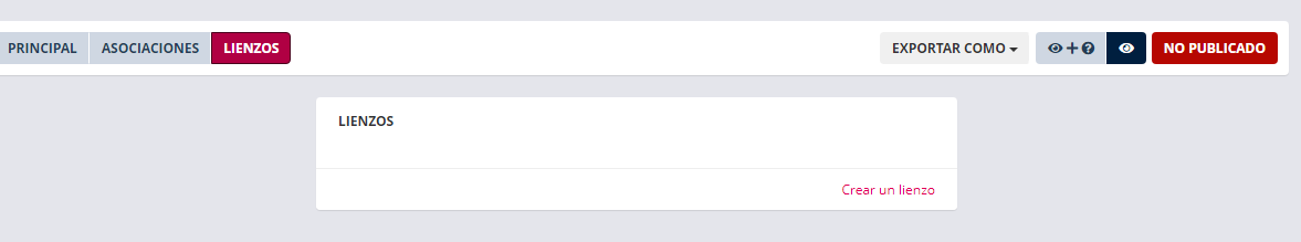Para crear el lienzo acceder haciendo clic en el botón lienzos. Subir miniatura de imagen para el botón de acceder al lienzo.