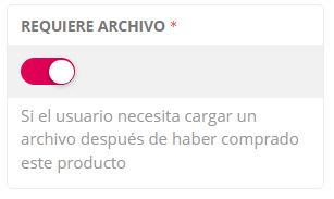 El sistema de "Requiere archivo" permite asociar a cada producto una página de contenido personalizada, que actúa como guía específica para la subida de archivos.