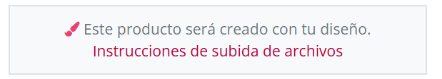 - Los archivos que puede subir el cliente en cada producto son archivos de imagen JPG, JPEG, archivos vectoriales PDF y ZIP.