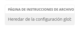 El administrador puede personalizar esta página de contenido en cada producto. Para ello, en el editor de propiedades dispone del selector, "Página de instrucciones de archivo". Este selector permite elegir cualquiera de las páginas de contenido previamente creadas, de forma que el cliente pueda ver las instrucciones específicas que correspondan al producto.
