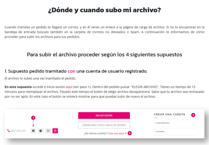 Ambos enlaces, (1 y 2), llevan al cliente a una misma página de contenido con instrucciones para la carga del archivo.